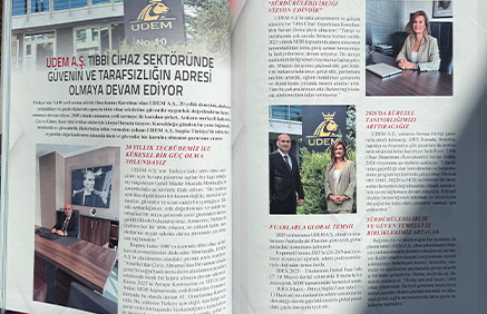 UDEM A.Ş. olarak, tıbbi cihaz sektöründeki 20 yılı aşkın deneyimimiz, MDR kapsamındaki yetkinliğimiz ve küresel faaliyetlerimizle Sağlık Dergisi’nin 2026 sayısında yer aldık.